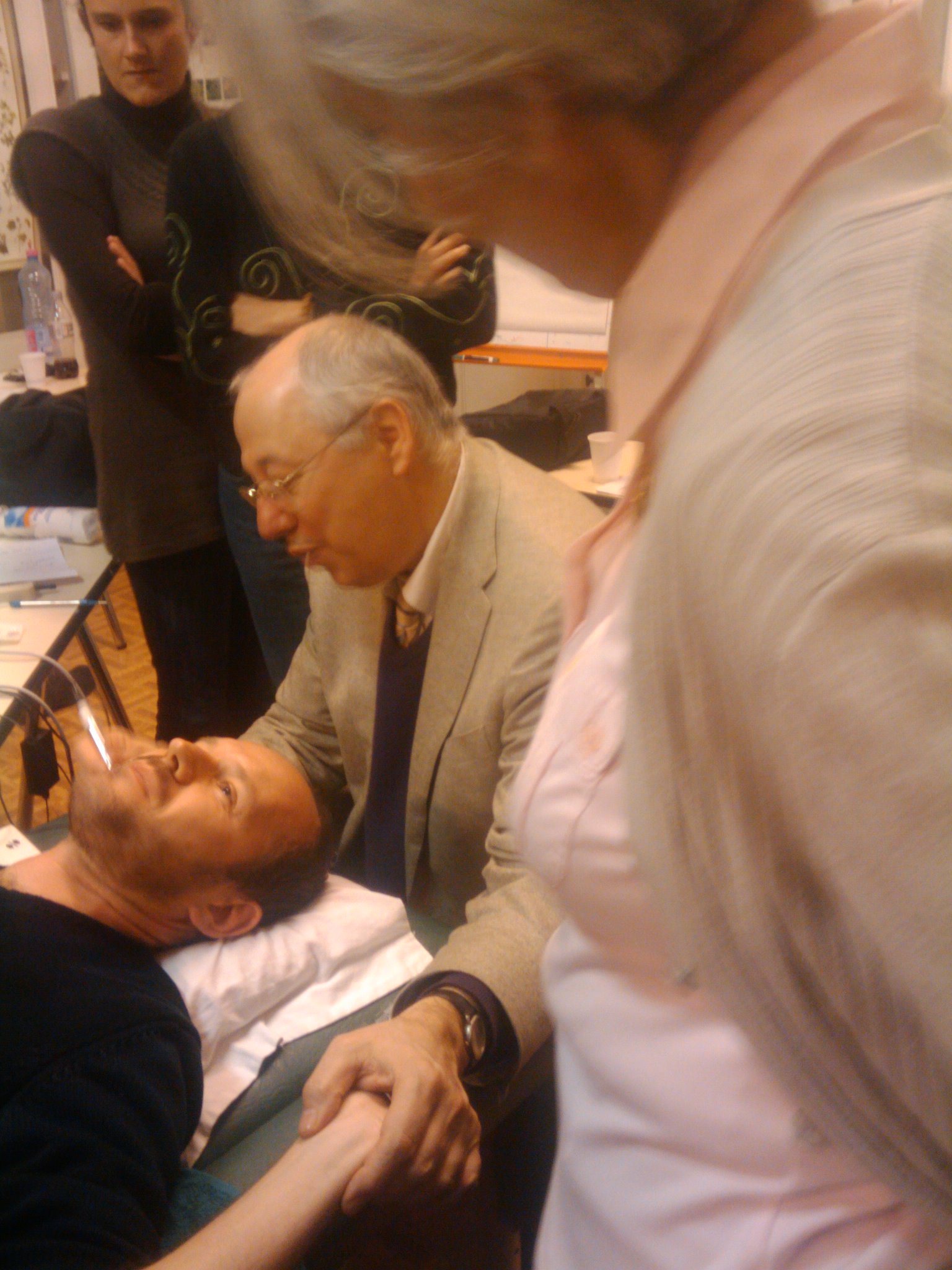 Dr. Nogier is shown here demonstrating his hands on teaching approach during one of his classes in Lyon, France.